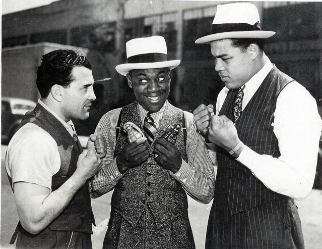 Fidel LaBarba, Dancer Bill " Bo Jangels " Robinson, and Champion Joe Louis at Fox Studios ( circa 1930's )